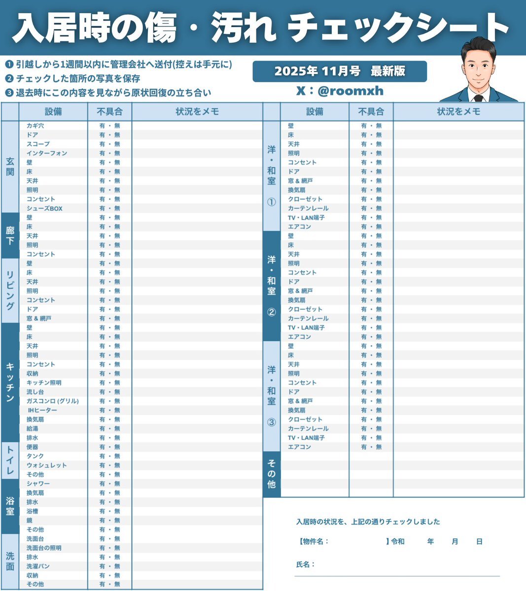 に関連するツイートTwitter賃貸の一人暮らし 退居のトラブルはこれで解決 ⇒ 新居の「 傷汚れチェックリスト 」 〜 来春から新生活のみなさまへ 〜 pic.x.com/Gd1B2N7JqP x.com/roomxh/status/…