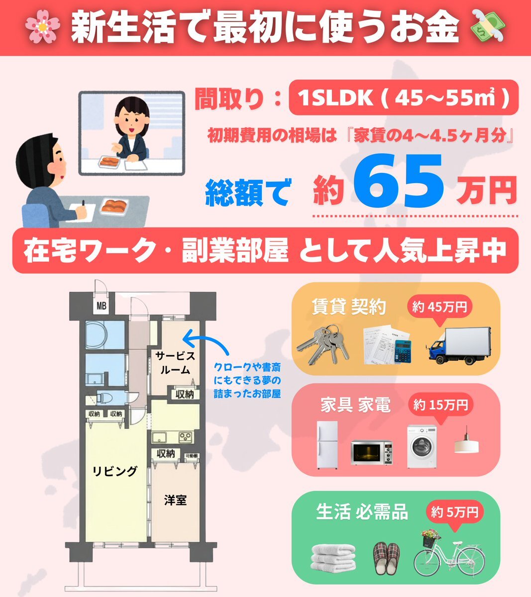 賃貸の一人暮らし 『初期費用と(家賃)』の相場↓ 1:洋室 S:サービスルーム L:リビング D:ダイニング K:キッチン 【北海道】:26万円(6.0万円) 【青森県】:20万円(4.7万円) 【岩手県】:24万円(5.3万円) 【宮城県】:28万円(6.2万円) 【秋田県】:18万円(4.2万円) pic.x.com/jjy4Os9cF0 x.com/roomxh/status/…