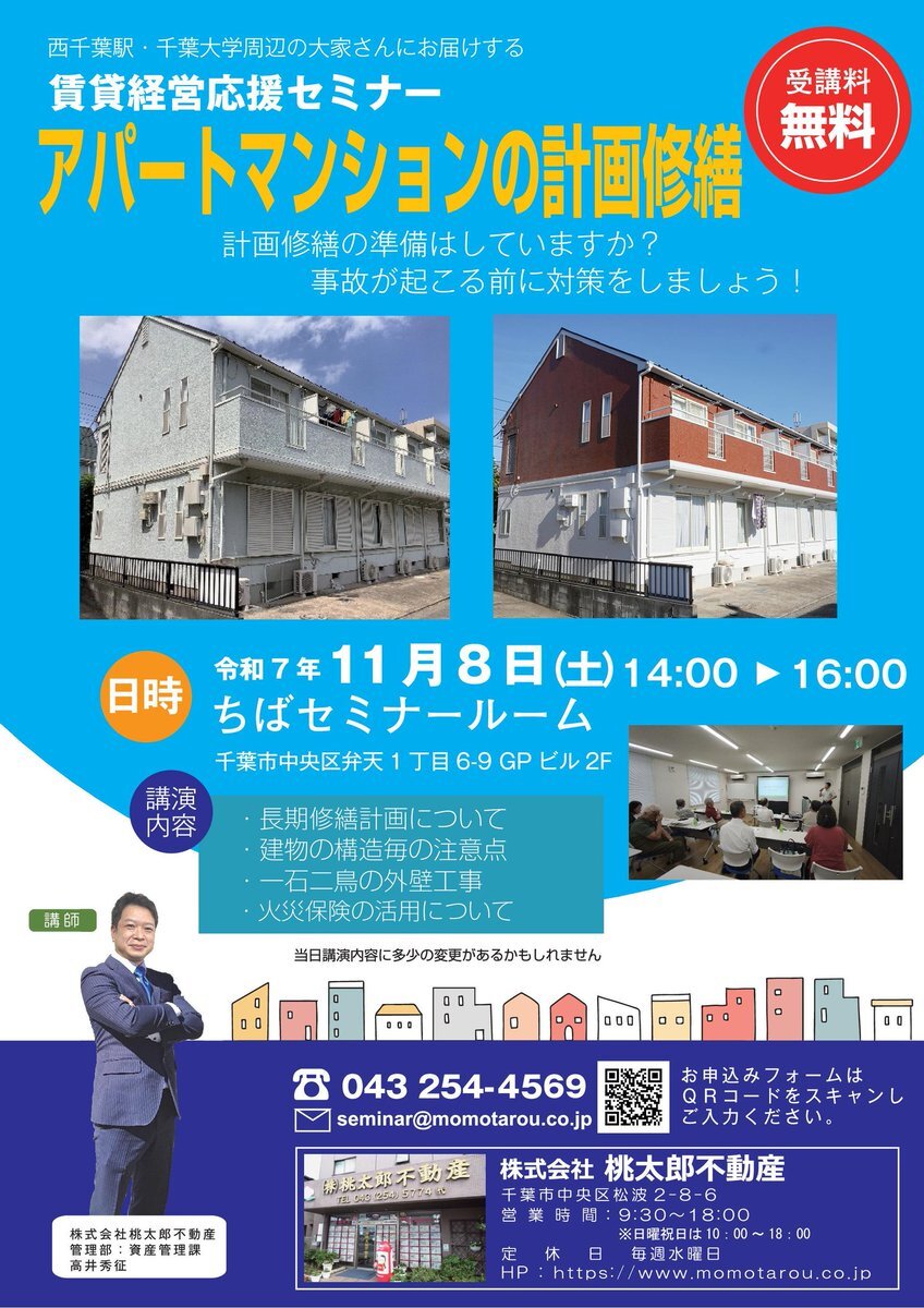 に関連するツイートTwitter賃貸経営応援セミナー! 11/8(土)です! まだ若干のお席がありますので、お申込みお待ちしております! 桃太郎不動産 momotarou.co.jp #西千葉 #千葉 #賃貸 #大家 #賃貸経営 #セミナー #資産運用 x.com/momotarou0113/…